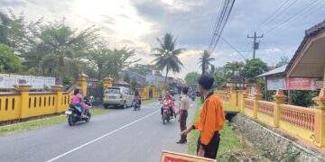 Pramuka Kwarran Purwojati Bantu Pengaturan Lalu Lintas Saat Pembagian Takjil di Sekitar Posko APP KBL