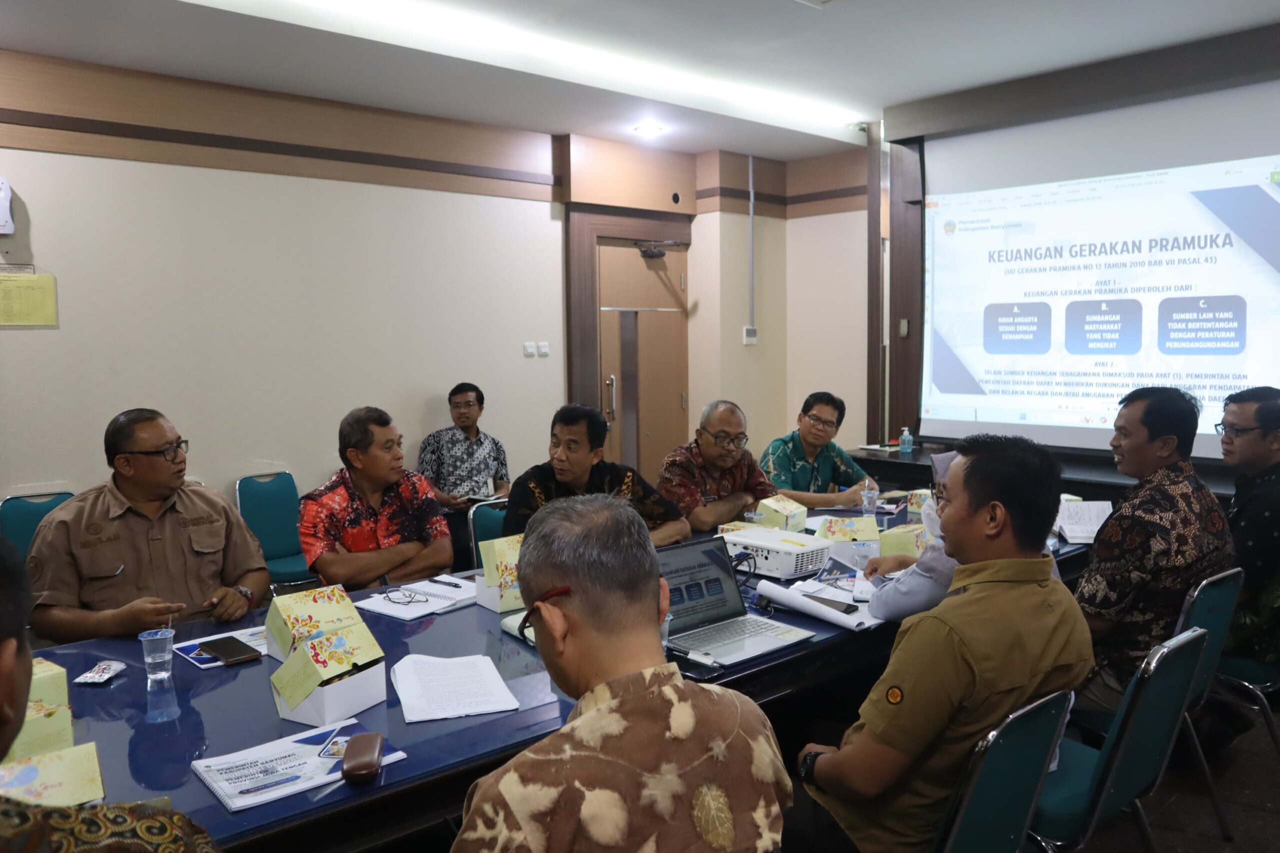 Pemerintah Kabupaten (Pemkab) Banyumas melakukan audiensi dengan Pemerintah Provinsi (Pemprov) Jawa Tengah pada Jumat, 26 September 2025, di ruang rapat Asisten Pemerintahan dan Kesejahteraan Rakyat (Aspem Kesra) Provinsi Jawa Tengah. Pertemuan ini membahas usulan pembobotan nilai pada Seleksi Penerimaan Peserta Didik Baru (SPMB) jalur prestasi Pramuka dan Pramuka Garuda, serta usulan iuran anggota bagi SMA/SMK sesuai amanah undang-undang.