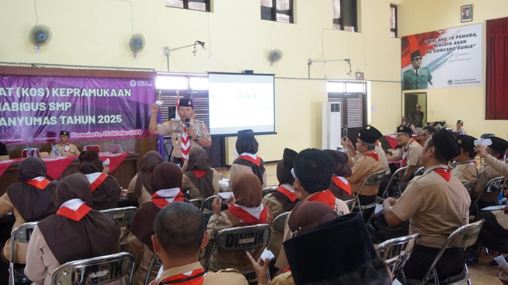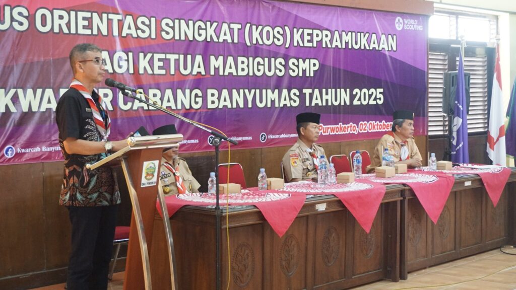 Dinas Pendidikan Kabupaten Banyumas bekerja sama dengan Pusdiklatcab Kendalisada menggelar kegiatan Kursus Orientasi Singkat (KOS) Kepramukaan bagi para Kepala Sekolah SMP selaku Ketua Majelis Pembimbing Gugus Depan (Ka Mabigus) Gerakan Pramuka se-Kwartir Cabang (Kwarcab) Banyumas, Kamis (2/10/2025). Kegiatan ini berlangsung di Gedung Gurinda Sarwa Mandala (GSM) Dinas Pendidikan Kabupaten Banyumas.