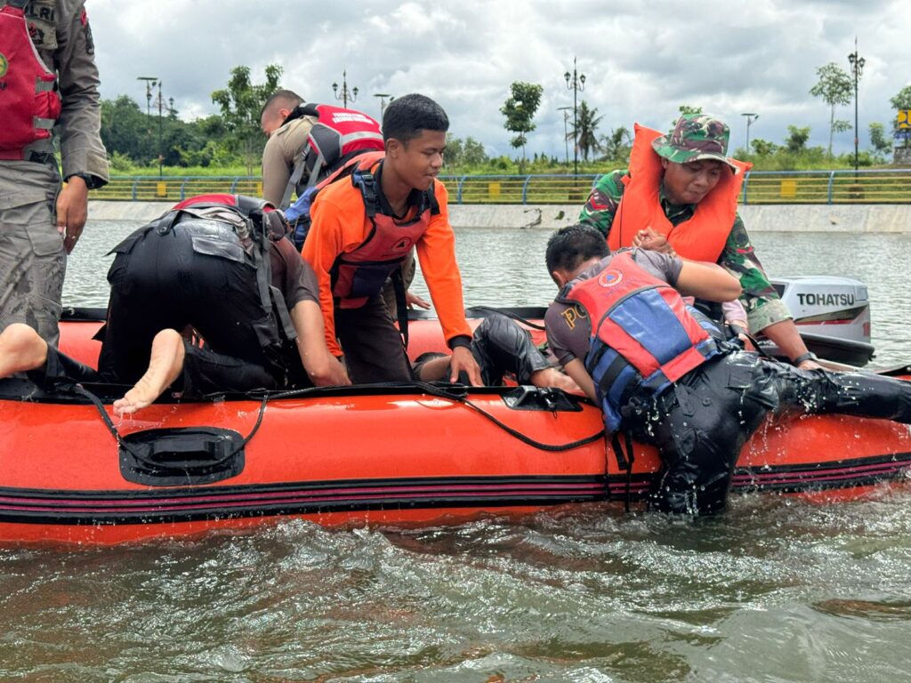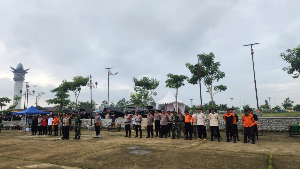 Kwartir Cabang Banyumas mengambil peran dalam kegiatan Latihan Gabungan Penanganan Bencana Alam yang digelar di kawasan Kolam Retensi, kompleks Menara Teratai Purwokerto Barat, Kamis (23/10/2025).
