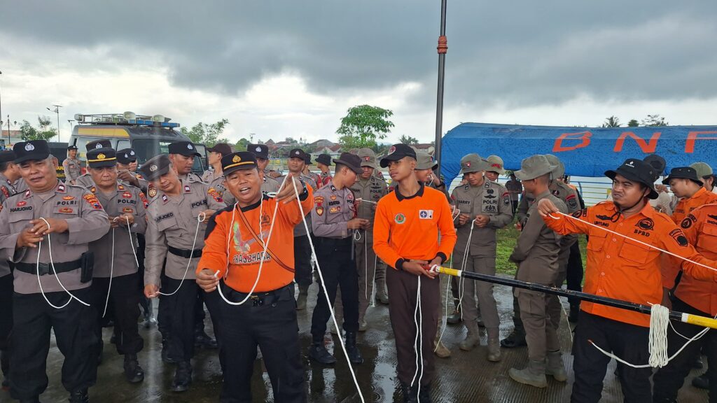 Kegiatan yang berlangsung sejak pukul 07.00 hingga 15.30 WIB ini melibatkan berbagai unsur, meliputi Polresta Banyumas, TNI, Brimob, Basarnas, Satpol PP, BPBD Kabupaten Banyumas, serta Kwarcab Banyumas. Latihan ini bertujuan untuk meningkatkan sinergi dan kesiapsiagaan lintas instansi dalam menghadapi potensi bencana alam di wilayah Banyumas.