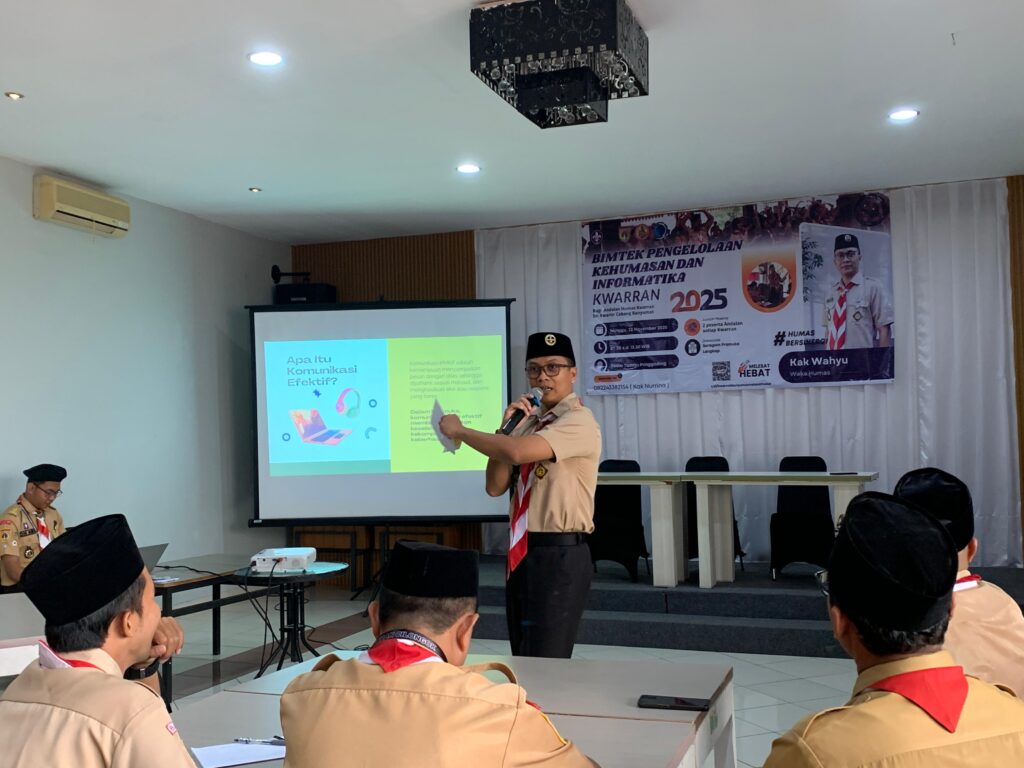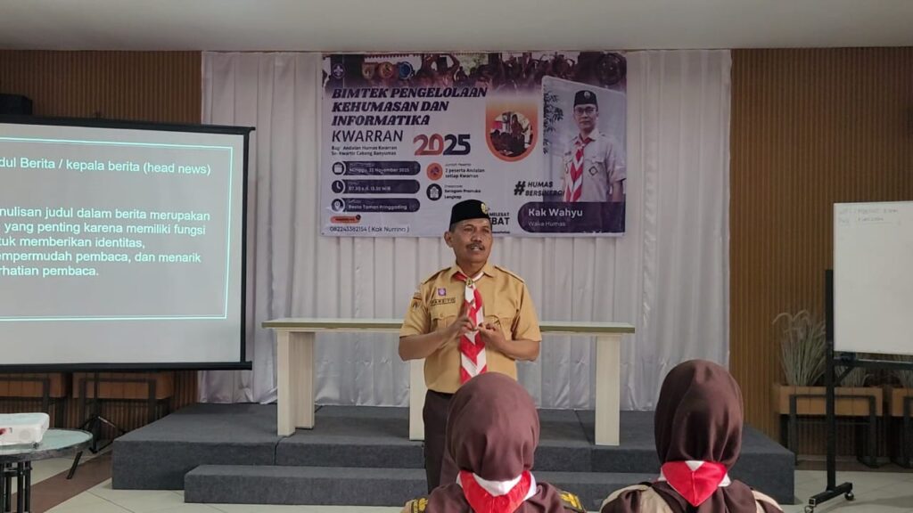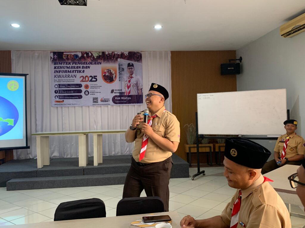 Bidang Humas Informatika Kwartir Cabang Banyumas kembali menghadirkan penguatan kapasitas kehumasan melalui Bimbingan Teknis (Bimtek) bagi perwakilan Kwartir Ranting (Kwarran) dan Satuan Karya (Saka) se-Banyumas. Kegiatan ini berlangsung pada Sabtu, 22 November 2025, di Ballroom Resto Taman Pringgading Purwokerto.
