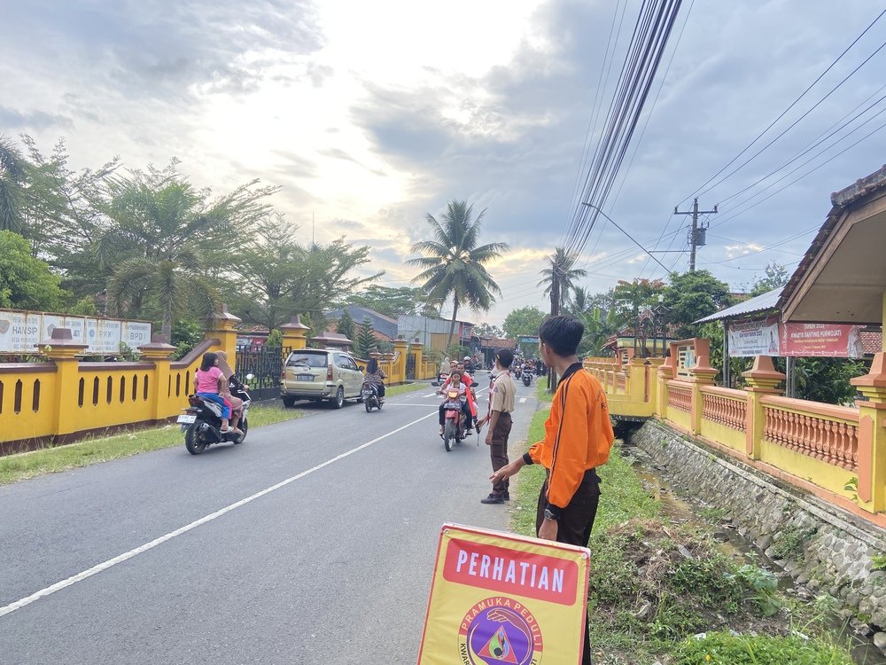 Dengan penuh tanggung jawab dan semangat pengabdian, para anggota Pramuka membantu mengarahkan kendaraan yang melintas serta memastikan kegiatan pembagian takjil dapat berjalan dengan aman tanpa mengganggu kelancaran lalu lintas di sekitar lokasi.