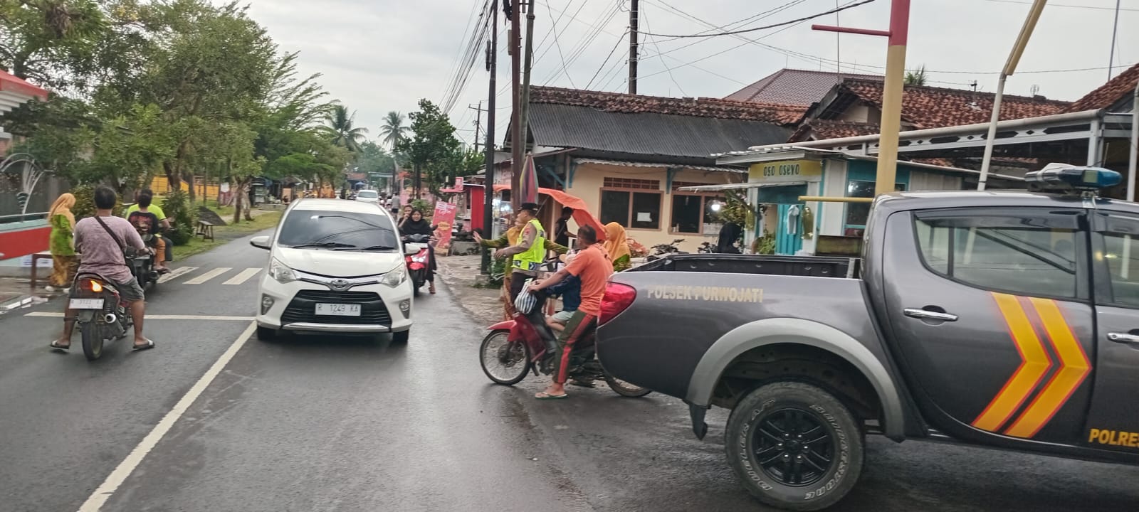 Selain melakukan monitoring, anggota Polsek Purwojati bersama anggota Pramuka Peduli (Pramuli) juga terlibat langsung dalam pengaturan arus lalu lintas di sekitar posko. Aktivitas ini dilakukan untuk menjaga kelancaran kendaraan yang melintas, mengingat lokasi posko berada di jalur yang cukup ramai, terlebih pada momentum bulan Ramadan yang diwarnai dengan meningkatnya aktivitas masyarakat, terutama menjelang waktu berbuka puasa.