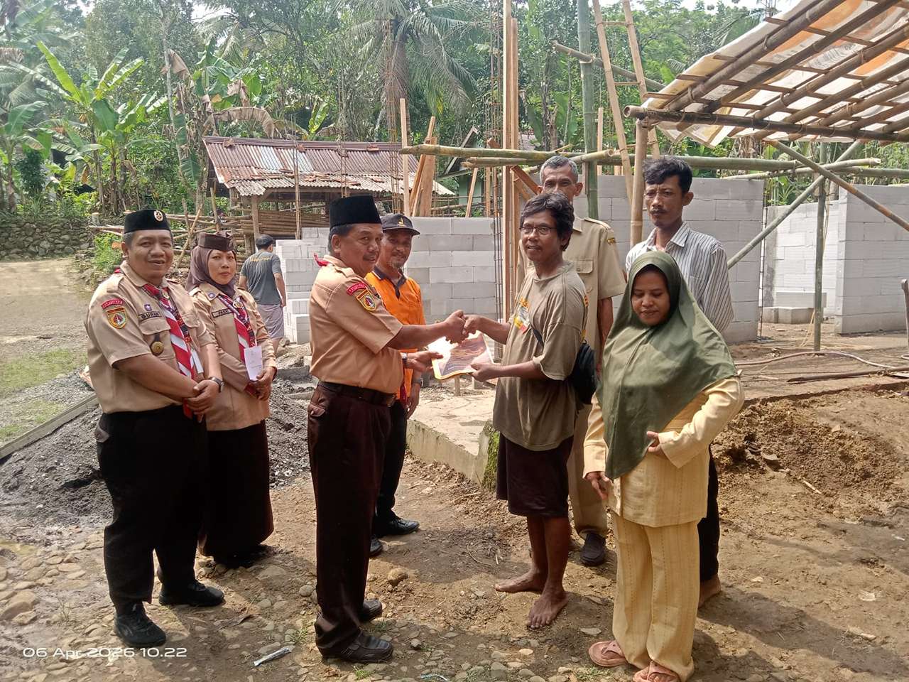 Gerakan Pramuka Kwartir Ranting Somagede serahkan bantuan Bumbung Kemanusiaan kepada Korban Kebakaran Didesa Somagede. Kegiatan ini berlangsung pada Senin, 6 April 2026 di Rumah Bapak Saliman Somagede, RT 03 / RW 05 Kecamatan Somagede.